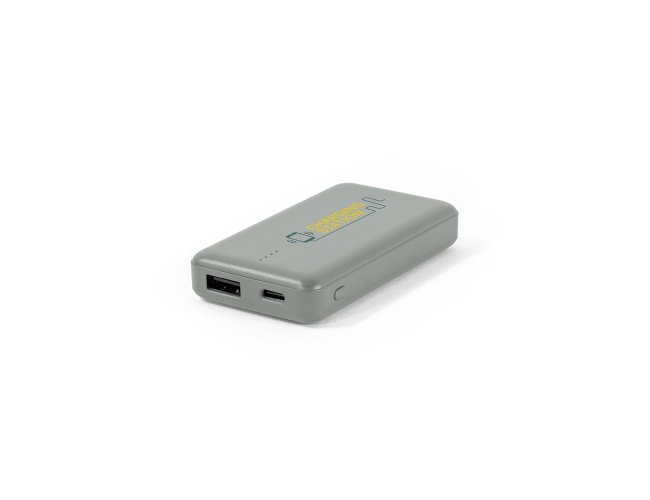 Bateria portátil em ABS 100% reciclado. Leve e com dimensões extremamente reduzidas é a solução perfeita para levar com você a qualquer lugar e garantir a bateria necessária em situações de emergência.Com capacidade de 4.000 mAh, indicador de nível de carga, uma porta de entrada USB-C e uma porta de saída USB-A. Incluso um cabo de carregamento USB-C. Fornecida em caixa presente de papel kraft reciclado. 87 x 48 x 17 mm | Caixa: 75 x 90 x 18 mm